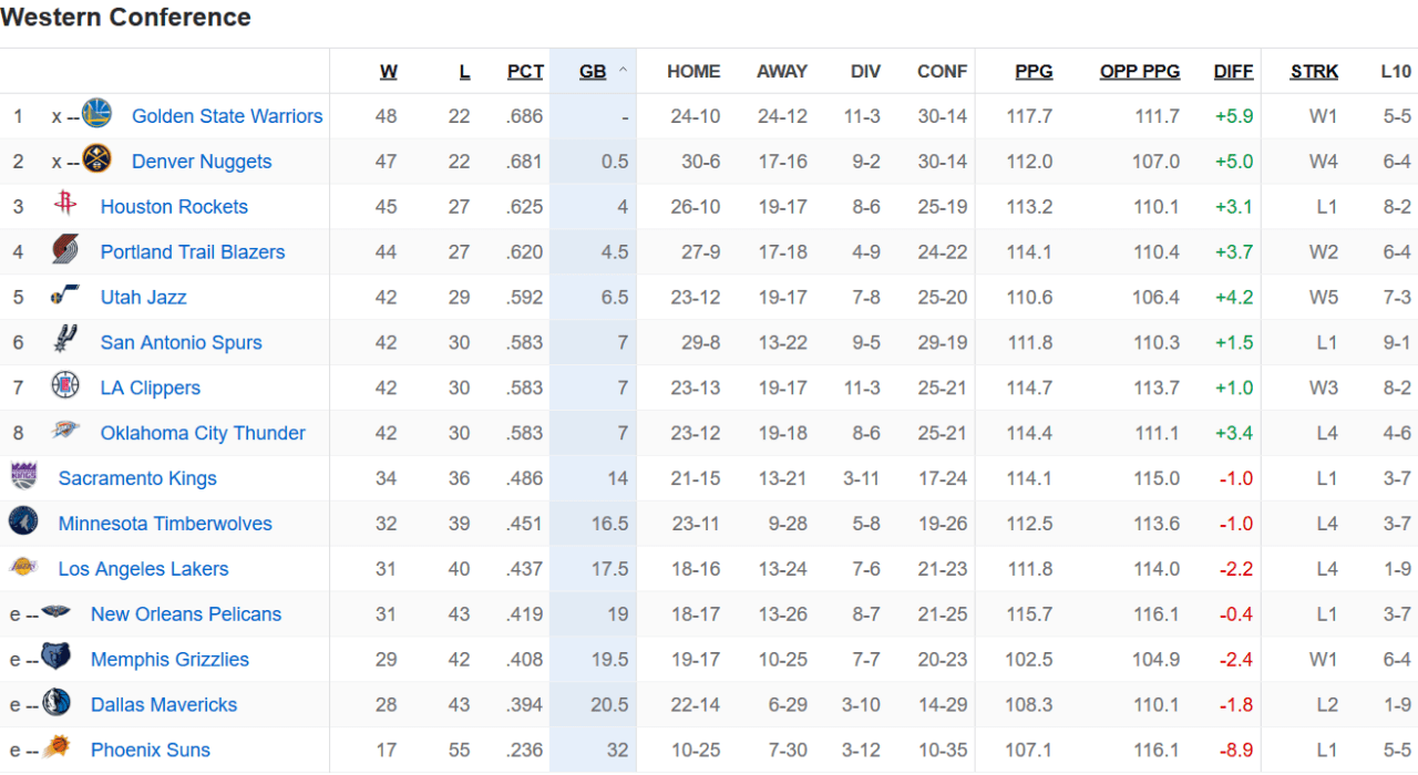 火箭队与勇士队紧随其后